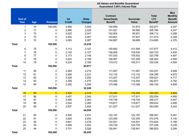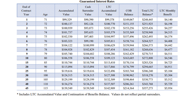 On the positive side, the interest credited will often increase your total LTC pool and monthly benefit, acting as an inflation buffer (without having to select an inflation rider, which is optional).