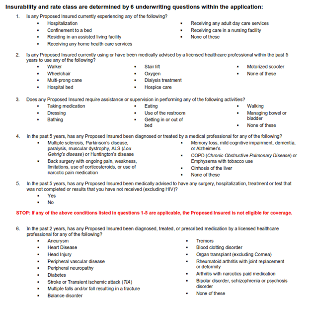 Here is an example of the health questionnaire for one of these carriers: